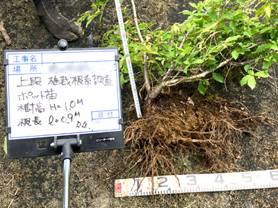 芽苗工法で植栽を行った樹木は地中に力強く根を張るため、地盤を強くし土砂災害や表層崩壊を防止します。